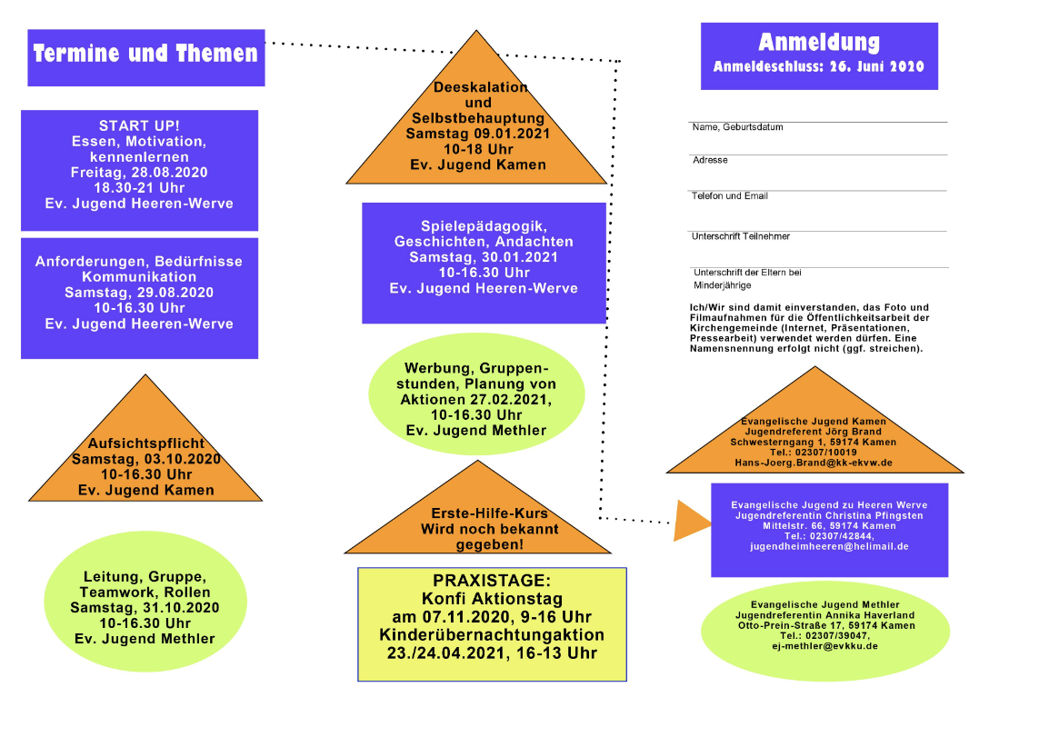 Gemeinsam mit der Ev. Jugend in Kamen und Methler bieten wir ein umfassendes und lebendiges Programm zur Ausbildung unserer neuen Jugendmitarbeiter an.