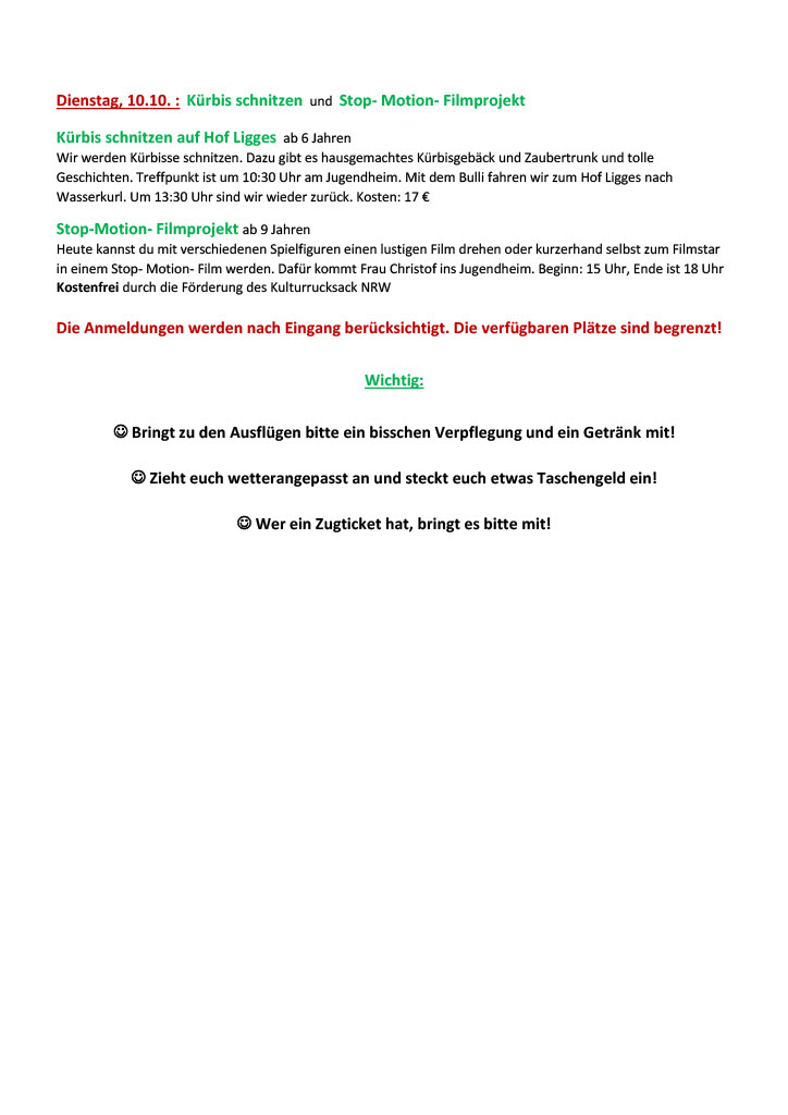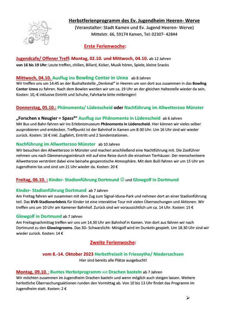 Ab sofort könnt ihr euch bei uns für das Herbstferienprogramm anmelden.